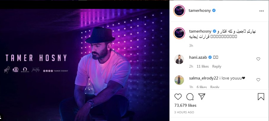 وعلق تامر حسني على الصورة قائلًا، ” نهاركم جميل و كله افكار و قرارات إيجابية“، مما أثار حيرة متابعيه وجمهور على موقع الإنستجرام.