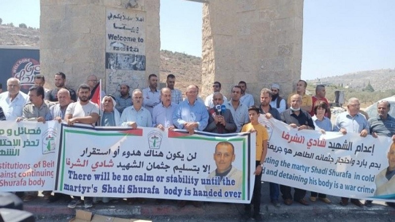 نابلس: طالبت الفعاليات الوطنية والشعبية والرسمية في محافظة نابلس، المجتمع الدولي بالتدخل من أجل الافراج الفوري عن جثمان الشهيد شادي الشرفا، من بلدة بيتا جنوب نابلس، والذي اغتالته قوات الاحتلال، الثلاثاء الماضي.