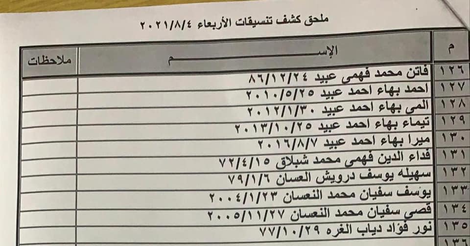 بالأسماء|| ملحق قائمة التنسيقات المصرية للسفر يوم غد الأربعاء
