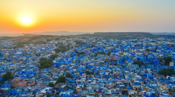القصة وراء اللون الأزرق: كانت المناطق ذات اللون الأزرق في الحي القديم من هذه المدينة والتي تقع بالقرب من صحراء ثار، موجودة حتى يتمكن الناس من التعرف بسهولة على المكان الذي يعيش فيه البراهمين. كان البراهمين، أعلى طبقة هندية، وعندما انتشر اللون في المدينة، أصبح اللون رمزًا للطبقة الاجتماعية المرتفعة.