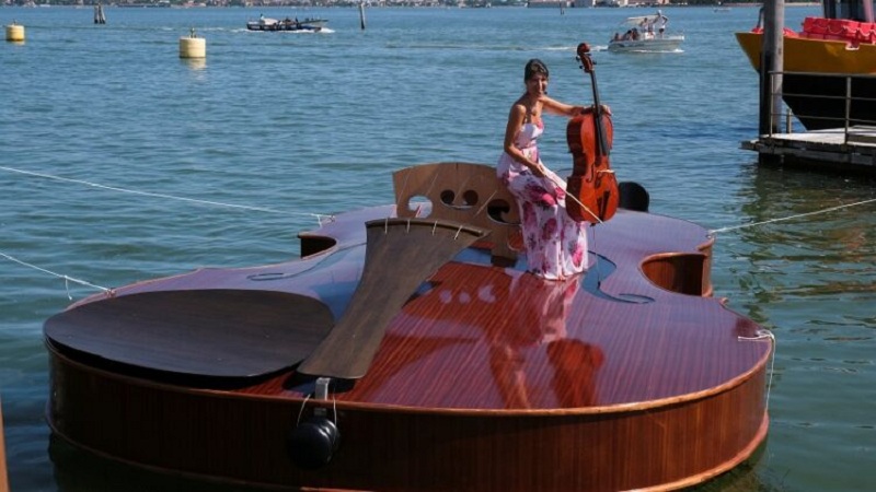 وكالات: أبحر قارب ضخم على شكل آلة الكمان طريقه إلى المياه، أمس الجمعة، في رحلة تجريبية بمدينة البندقية في إيطاليا، بعد صناعته تكريمًا لذكرى الضحايا الذين لاقوا حتفهم في جائحة فيروس كورونا، وانطلقت على متنه أنغام موسيقى عزفها فنان على آلة التشيلو.