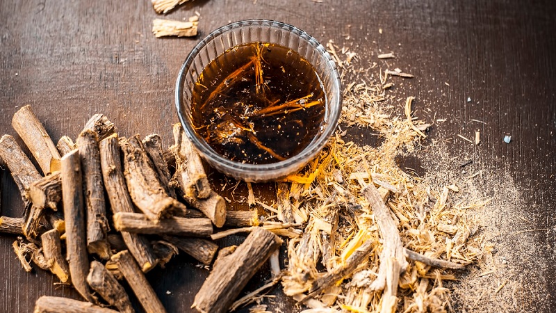 يضاف القليل من الماء الدافئ، إلى مزيج زيت عرق السوس، مع خلط المكونات جيدًا حتى تتشكل عجينة سميكة.