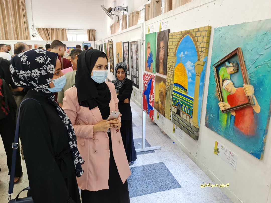 مواطنون يشاركون في معرض فني بمناسبة يوم الشباب العالمي