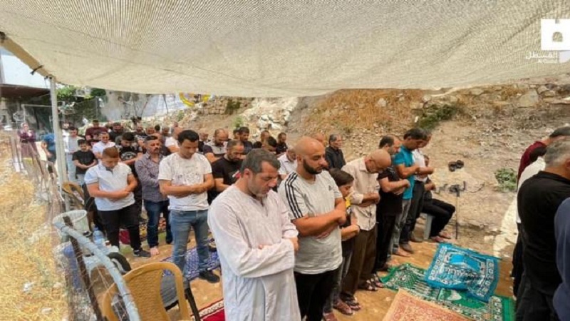 عشرات المقدسيين يؤدون صلاة الجمعة بخيمة التضامن في سلوان