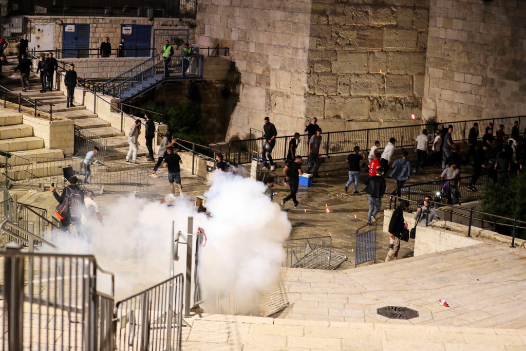 القدس: اعتقلت قوات الاحتلال، مساء اليوم الثلاثاء، 11 مواطنا وأصابت العشرات بجروح خلال عدوانها المتواصل على المارة قرب باب العامود أحد الأبواب الرئيسة للقدس المحتلة والمؤدي للمسجد الأقصى المبارك، حيث يحتفل المقدسيون ويحيون ذكرى المولد النبوي الشريف.