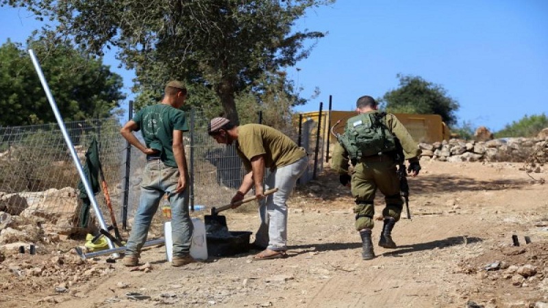 الخليل: شق مجموعة مستوطنين، اليوم الأربعاء، طريقا في أراضي المواطنين ببلدة ترقوميا غرب مدينة الخليل.