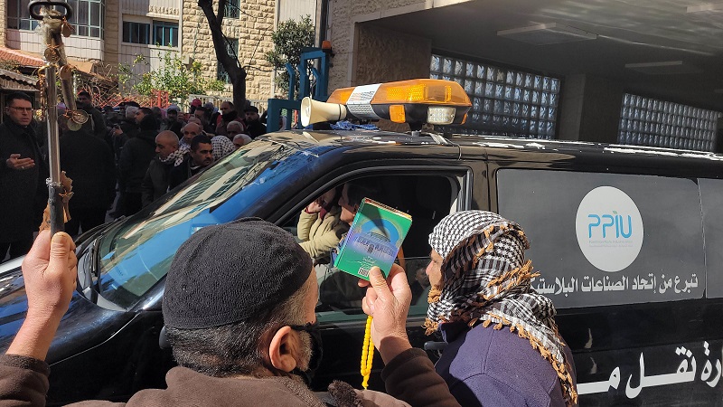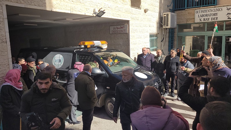 بالصور.. مواطنون ينقلون جثمان الهذالين إلى معهد الطب الشرعي في أبو ديس