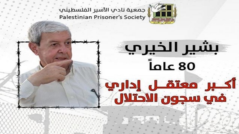 القدس المحتلة: أكد نادي الأسير، أن الأسير بشير الخيري "(80 عامًا" يتعرض لعملية مساومة من قبل الاحتلال بهدف الاعتراف بلائحة الاتهام الموجه ضده مقابل إنهاء اعتقاله الإداري.