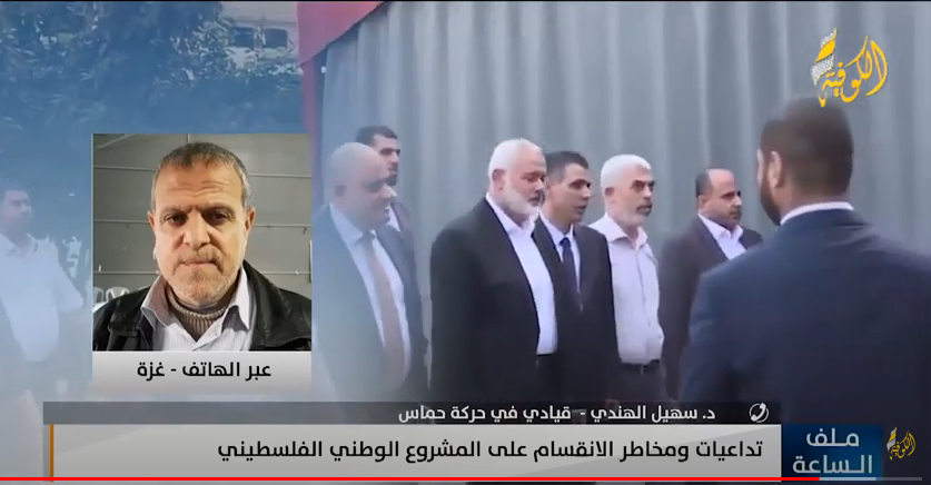 الكوفية وأشار، في برنامج " ملف الساعة" على قناة "الكوفية إلى ضرورة إنهاء الانقسام، وذلك من خلال الذهاب إلى الانتخابات وتجديد النظام السياسي وفق قوله.