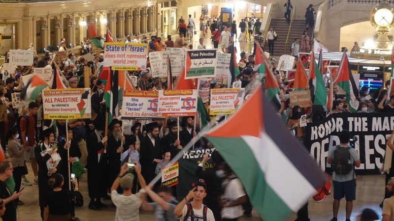واشنطن: نظم أنصار الحق الفلسطيني تظاهرة في مدينة سانت بول بولاية مينيسوتا الأمريكية، للمطالبة بسحب استثمارات متقاعدي الولاية من شركات إسرائيلية متورطة ومتواطئة مع الاحتلال.