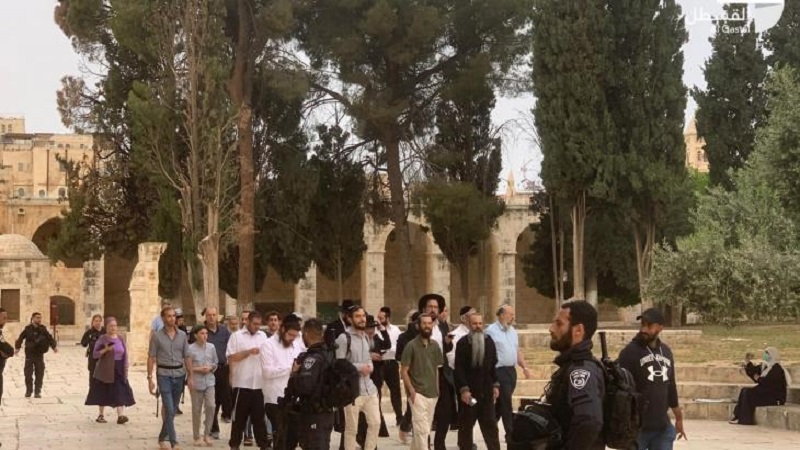 ويقتحم المستوطنون باحات المسجد الاقصى المبارك، يوميا ما عدا الجمعة والسبت ،على فترات صباحية ومسائية محاولة فرض التقسيم الزماني والمكاني فيه.