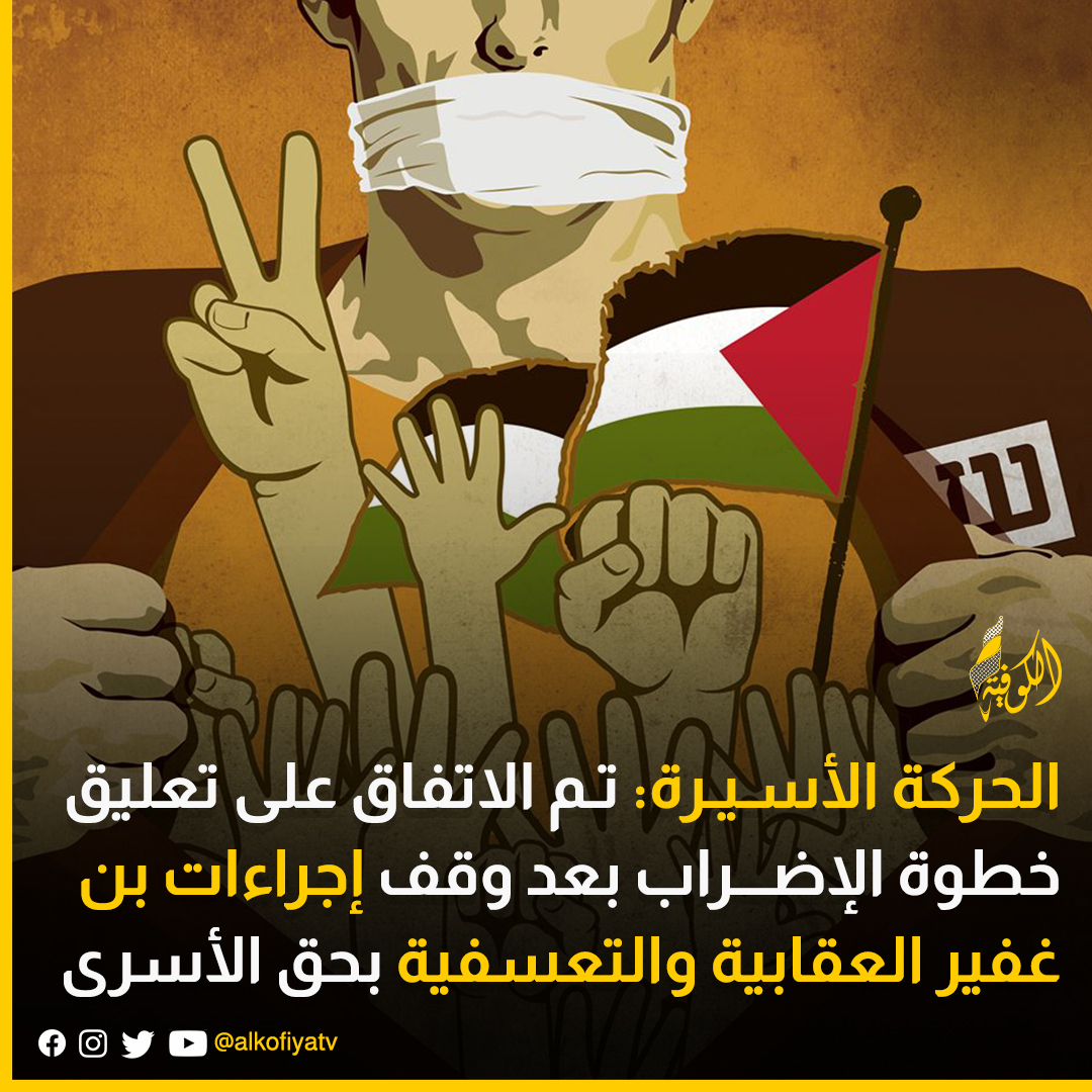 وذكرت الحركة الأسيرة في بيان مقتضب، أن "حكومة الاحتلال استجابت لكافة مطالبنا من دون الخوض في الإضراب ولقد حصلنا على ما نريد"، موضحة ان تم تعليق خطوة الإضراب المفتوح عن الطعام مع عودة الأمور داخل السجون لما قبل إجراءات بن غفير.
