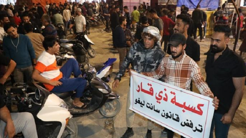 وبعد ساعات من تصويت البرلمان العراقي على قانون الانتخابات الذي اعتمد نظام الدائرة الواحدة ضمن آلية "سانت ليغو"، شهدت عدة محافظات عراقية احتجاجات شعبية.