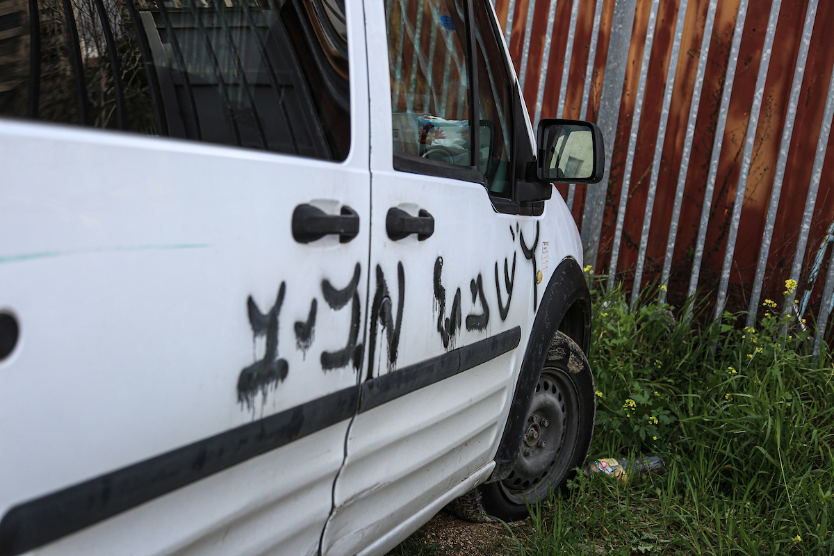 وأفاد شهود عيان، بأن مستوطنين اقتحموا القرية اليوم الثلاثاء، وأحرقوا مركبة تعود للمواطن إبراهيم عليان زايد، وخطّوا شعارات عنصرية على منزل المواطن صبحي غيث.