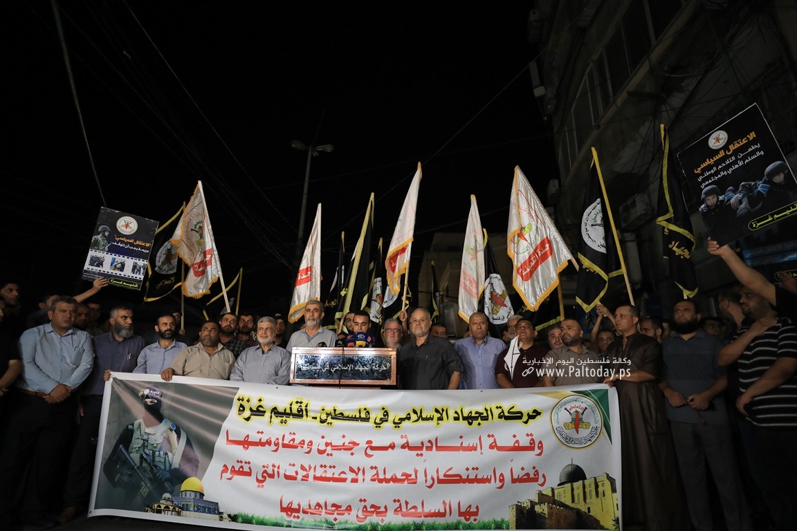 فقد انطلقت مسيرة جماهيرية حاشدة، في مخيم جنين رفضًا واستنكارًا للاعتقالات السياسية التي تمارسها السلطة الفلسطينية ضد الشبان والمقاومين في الضفة الغربية.