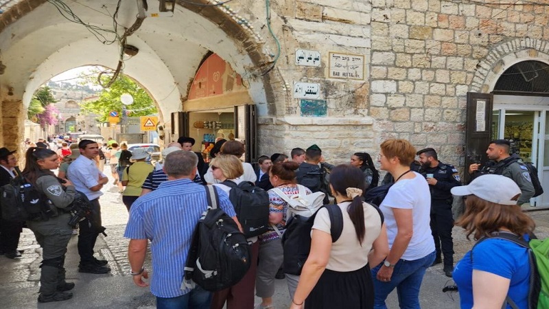 القدس المحتلة: أدى عشرات المستوطنين، طقوسا تلمودية في سوق القطانين وقرب باب القطانين، في المسجد الأقصى المبارك.