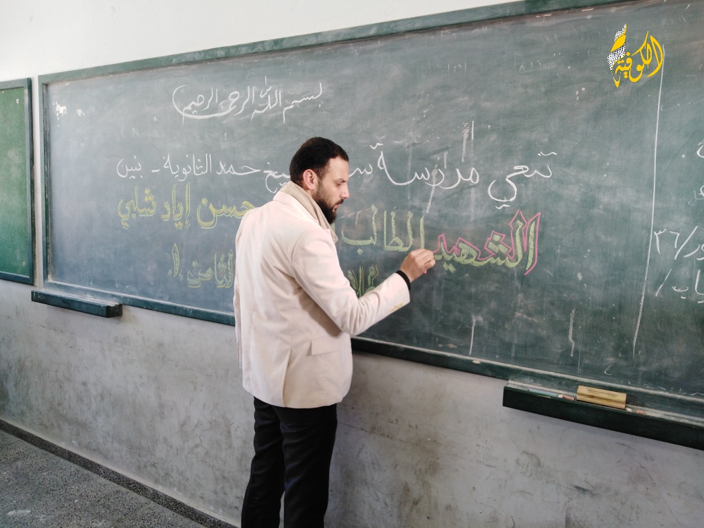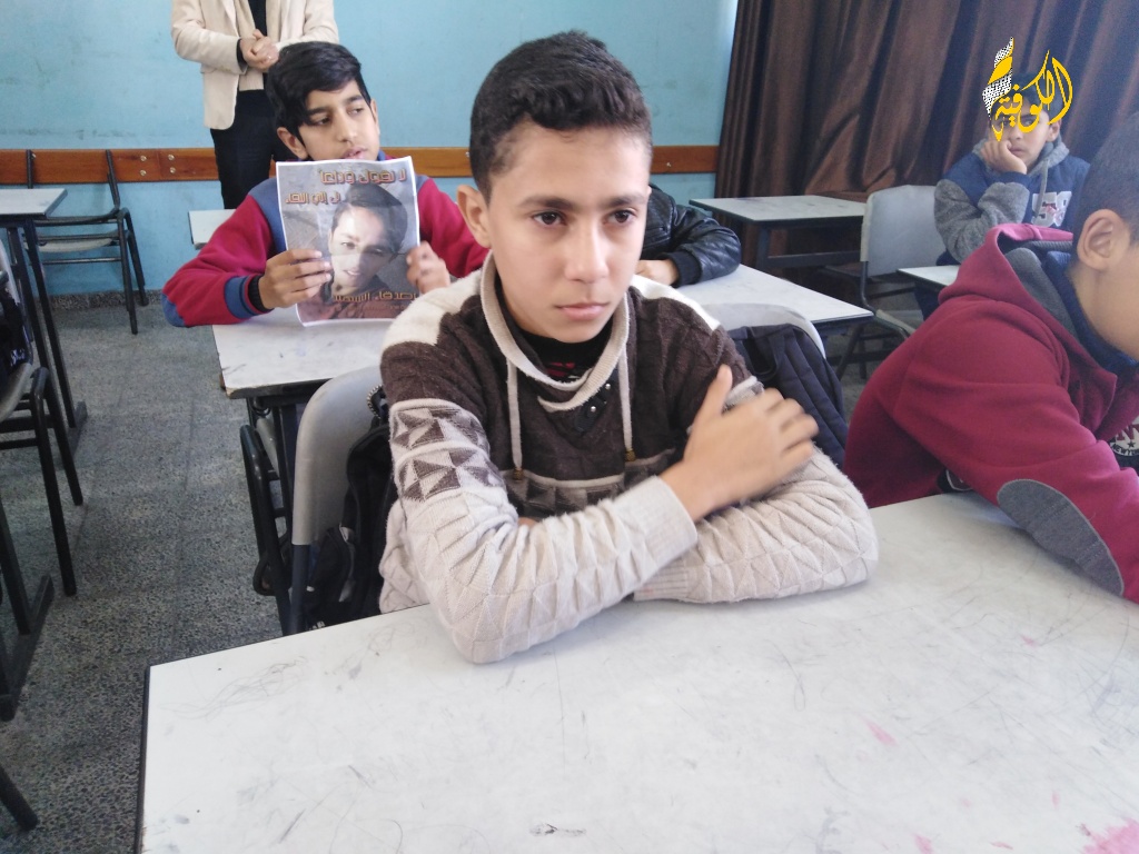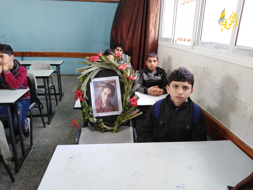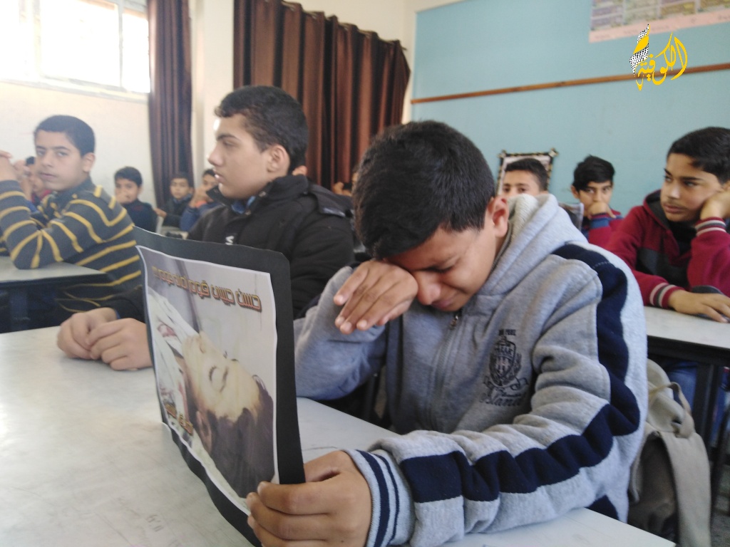 وجوهٌ بريئةٌ وملامحُ طفولةٍ شاخَتْ قبلَ أوانِها وحملَتْ قلوبُها سراباً من الحزنِ بعدَ أنْ شرِبتْ رصاصةُ الغدرِ الإسرائيليِ نهْرَ الحياةِ من رُوحِ الطفلِ حسن وسرقَتْ ابتسامتَهُ التي كانت تزيِّنُ فصلَهُ ووخطفَتْ روحَ الفكاهةِ التي شاركَها أصدقاءَه.