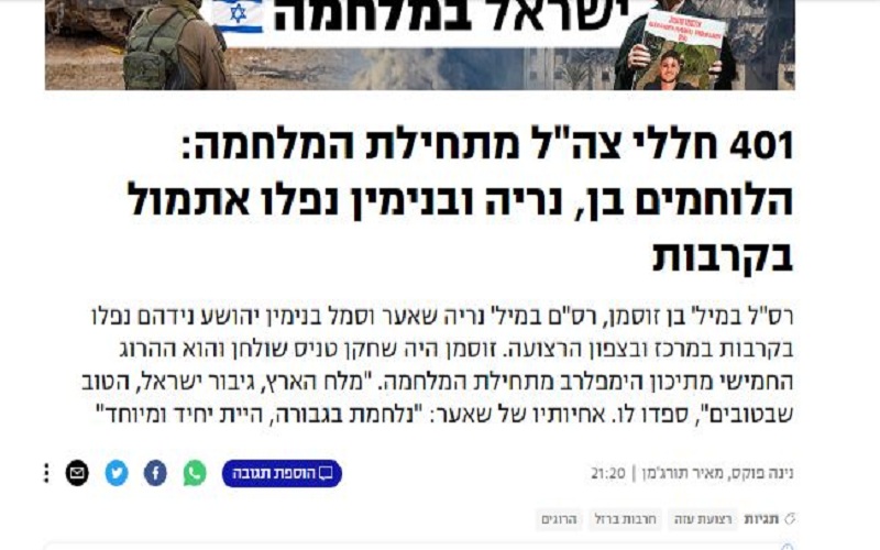 ترجمة لـ"الكوفية": جيش الاحتلال يقر بمقتل 401 من جنوده في قطاع غزة