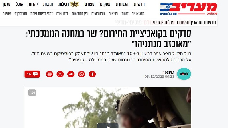 الكوفية  وتابع، "كان اجتماع كتلة الليكود هذا الأسبوع بمثابة خلاصة للانخراط في السياسة"، وحول التوترات في الحكومة بعد الميزانية المحدثة، قال تروبر، "سنصوت ضدها إذا كان نتنياهو يريد إقالتنا، فليطردنا. سنصوت ضدها لأن هذه الميزانية بها أقسام غير مناسبة في زمن الحرب".