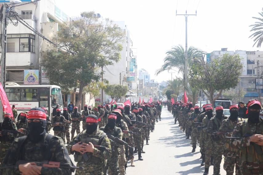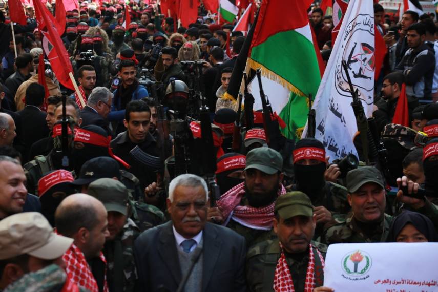 جاء ذلك خلال مسيرة انطلقت، اليوم السبت، من متنزه بلدية غزة، شارك فيها الآلاف من أنصار الجبهة إحياءًا لذكرى انطلاقتها الـ50 بعنوان "لا لصفقة القرن، نعم لإنهاء الانقسام واستعادة الوحدة، نعم للقدس عاصمة فلسطين الأبدية" بمدينة غزة.