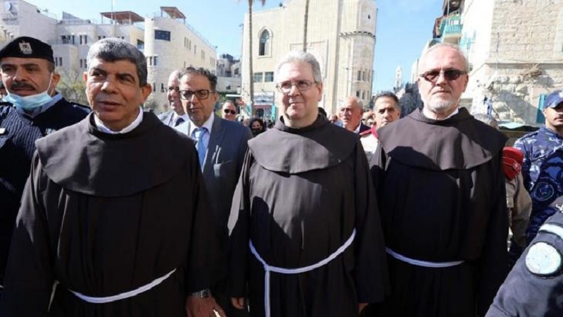بيت لحم: وصل موكب حارس الأراضي المقدسة الأب فرانشيسكو باتون إلى بيت لحم، اليوم الجمعة، قادما من مدينة القدس المحتلة، لترؤس قداس "عيد الغطاس" حسب التقويم الغربي، في كنيسة القديسة كاترينا الرعوية المحاذية لكنيسة المهد، غدا السبت.