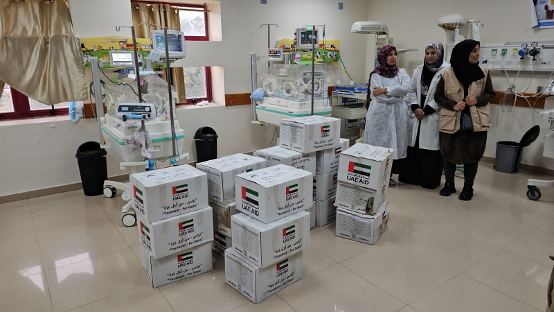 غزة: وزع متطوعو الهلال الأحمر الإماراتي، واللجنة الوطنية للشراكة والتنمية، اليوم الأحد، عشرات الطرود الخاصة بالأطفال الخُدج وحديثي الولادة في قسم الأطفال داخل مستشفى شهداء الأقصى بالمحافظة الوسطى، ضمن عملية الفارس الشهم 3 الإماراتية، التي تعمل على تعزيز الجانب الإنساني والإغاثي، في قطاع غزة.