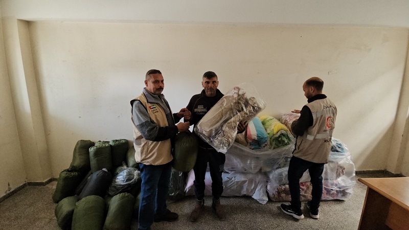 صور|| توزيع أغطية شتوية على الأطفال في مراكز الإيواء بالمحافظة الوسطى