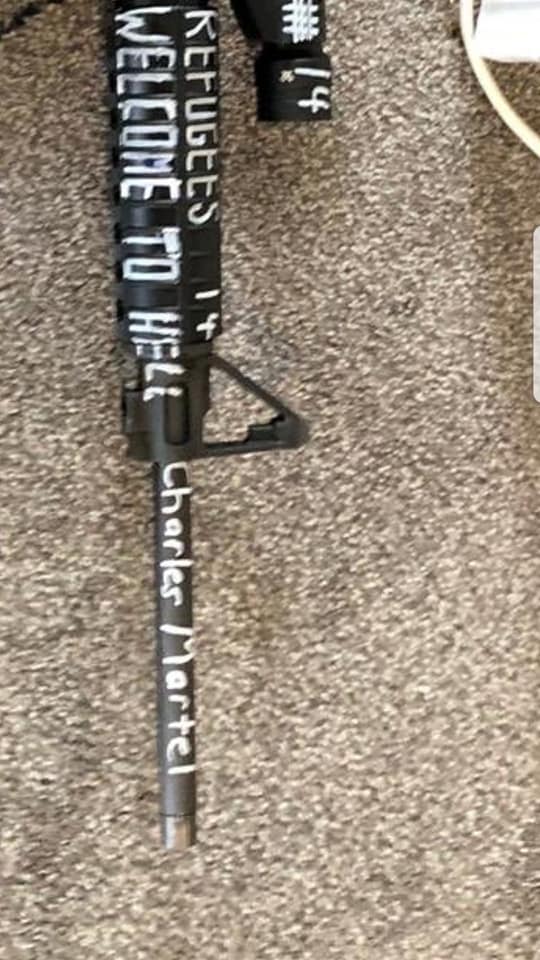 واحتوت صفحته على تويتر على صور لمخازن ذخيرة، نقش عليها أسماء بطريقة مبعثرة، بما في ذلك أسماء اثنين من القتلة الذين استهدفوا المهاجرين والمسلمين.