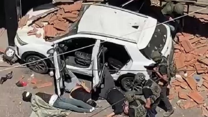 وأظهر مقطع فيديو تم تداوله، عناصر القوة الخاصة وهم يسحبون شابين مصابين من داخل المركبة، دون معرفة حالتهما الصحية.