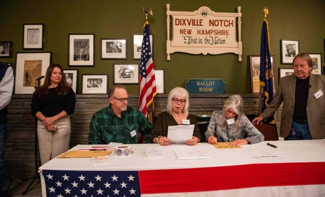 وبحسب شبكة "فوكس نيوز" الأميركية، فإن ديكسفيل نوتش بلدة نائية في منطقة نورث كانتري بنيو هامبشاير، وقد أدلى مواطنوها الستة بأصواتهم عند منتصف الليل.