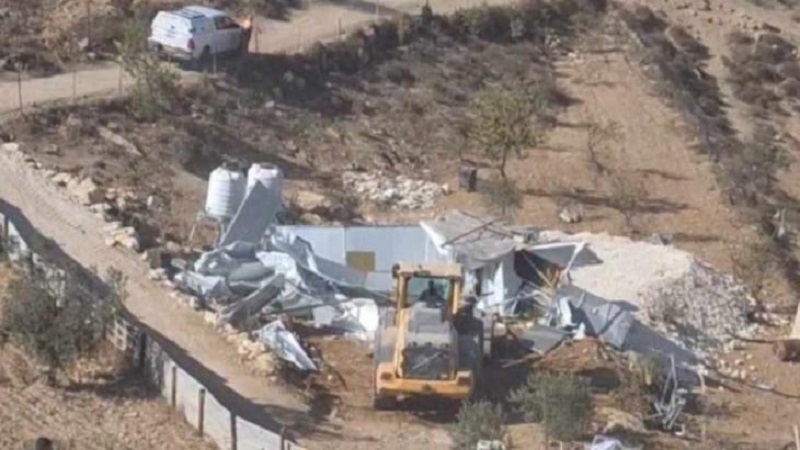 صور وفيديو || الاحتلال يهدم مسكنا في مسافر يطا