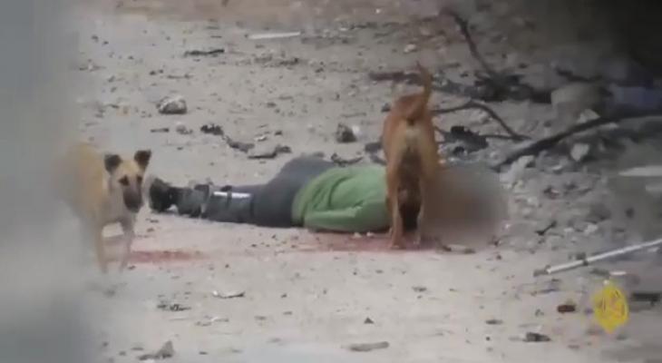 متابعات: أظهرت مشاهد مصورة، تعرّض جثامين الشهداء الملقاة في الطرقات بشمال قطاع غزة، للنهش من الكلاب الضالة.