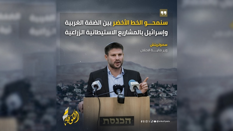 وخلال زيارة له إلى مزرعة في مستوطنة بالضفة الغربية، قال سموتريتش: "سنمحو الخط الأخضر «أراضي48» بتعزيز المشاريع الزراعية".