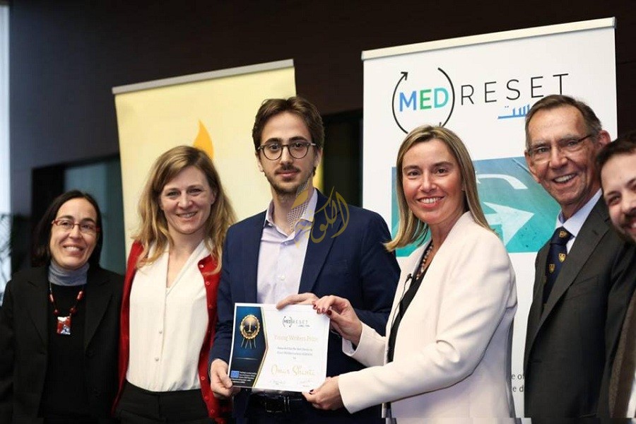 موغريني تسلم شاب فلسطيني 23 عاما جائزة "الكاتب الشاب" ضمن مشروع مِد ريست