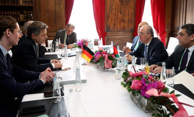 مصطفى يبحث مع نائب المستشار الألماني دعم جهود إعادة إعمار غزة