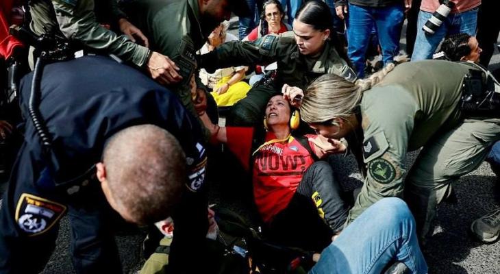 وأظهرت مقاطع مصورة عناصر من الشرطة وهم يخلون بالقوة متظاهرين أثناء إغلاقهم أحد الشوارع قرب مكتب رئيس وزراء الاحتلال بنيامين نتنياهو، القريب من مبنى الكنيست.