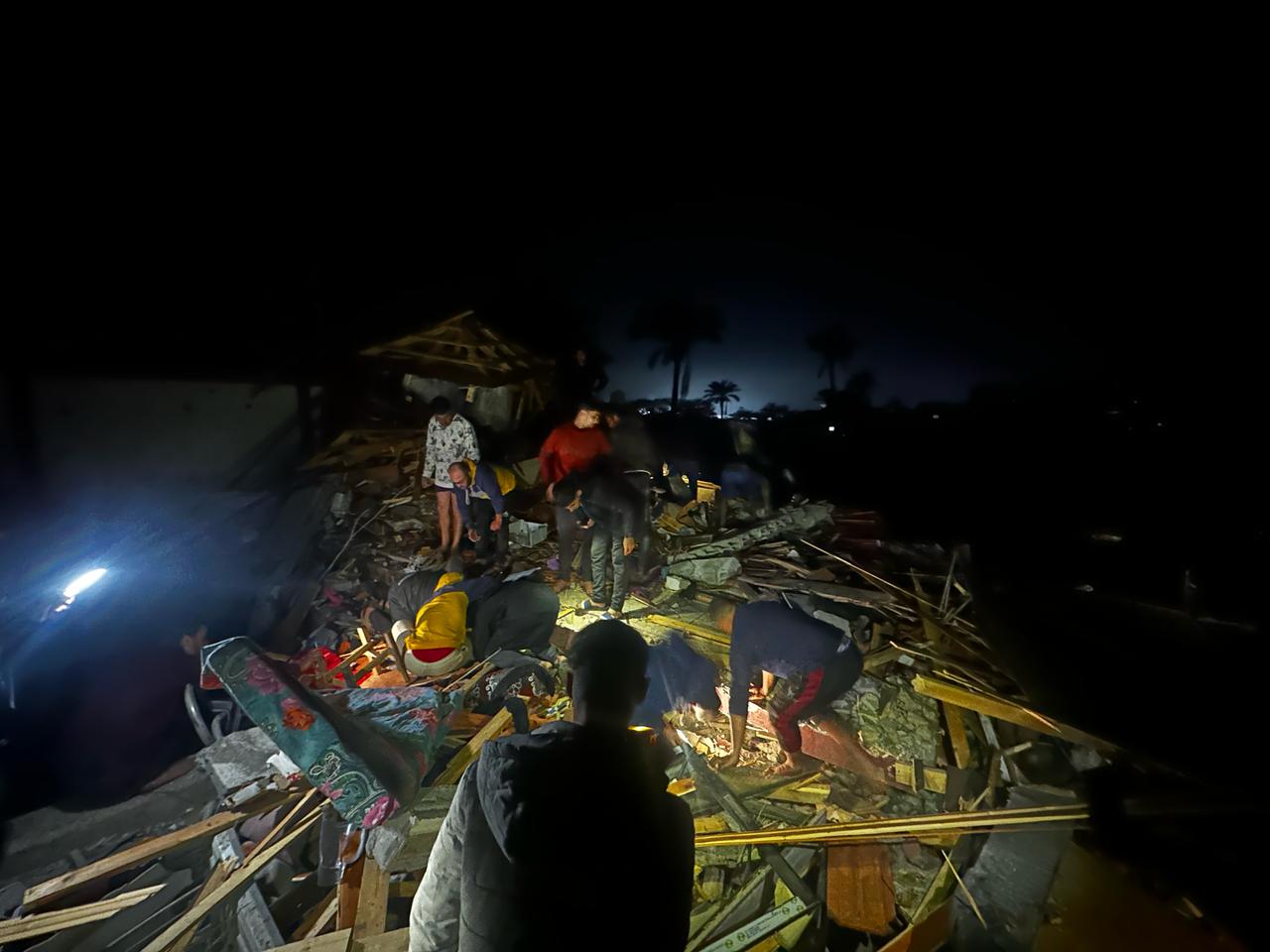 مصابون جراء قصف طائرات الاحتلال منزلا بمخيم النصيرات وسط قطاع غزة
