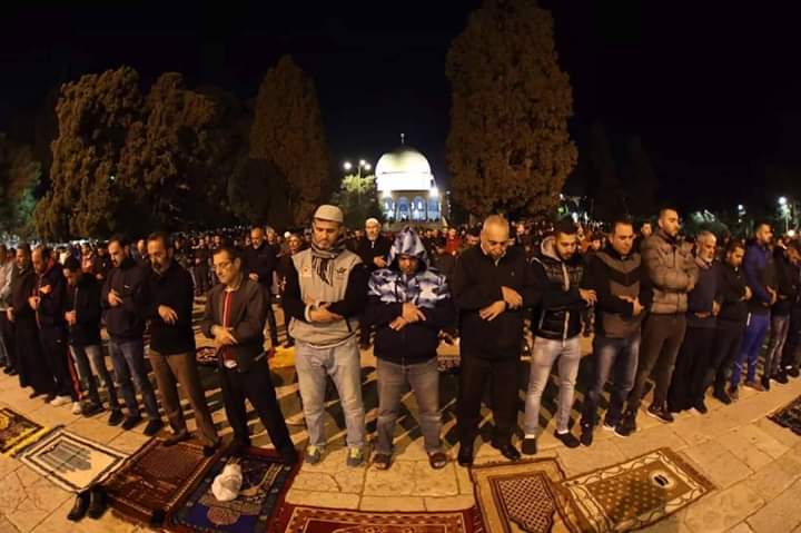 القدس المحتلة: أدى أكثر من مائة ألف مُصل من القدس المحتلة وأراضي الـ48 وخارجهما، الليلة، صلاتي العشاء و"التراويح" في رحاب المسجد الأقصى المبارك.