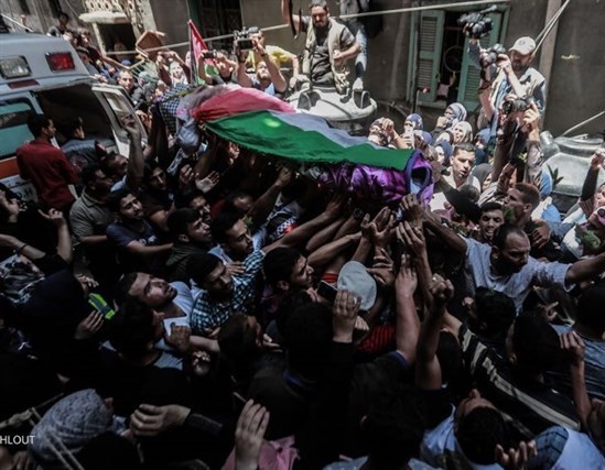 وشارك الآلاف من الفلسطينيين في تشييع الشهيدة في بلدتها خزاعة وسط تنديد بجرائم الاحتلال.