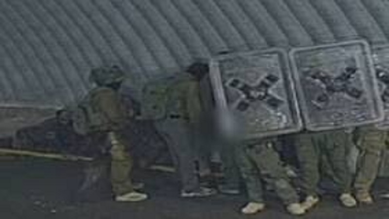 وحاول الجنود التغطية على أفعالهم برفع الدروع التي كانوا يحملونها لحجب ما يجري عن الكاميرات المثبتة في المكان.