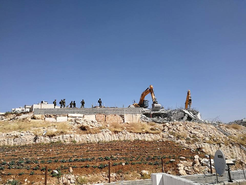 وأكد شهود عيان،" أن قوات الاحتلال داهمت المنطقة وهدمت بناية مكونة من أربع شقق سكنية وطابق أرضي قيد الإنشاء، وبئر لتجميع المياه".