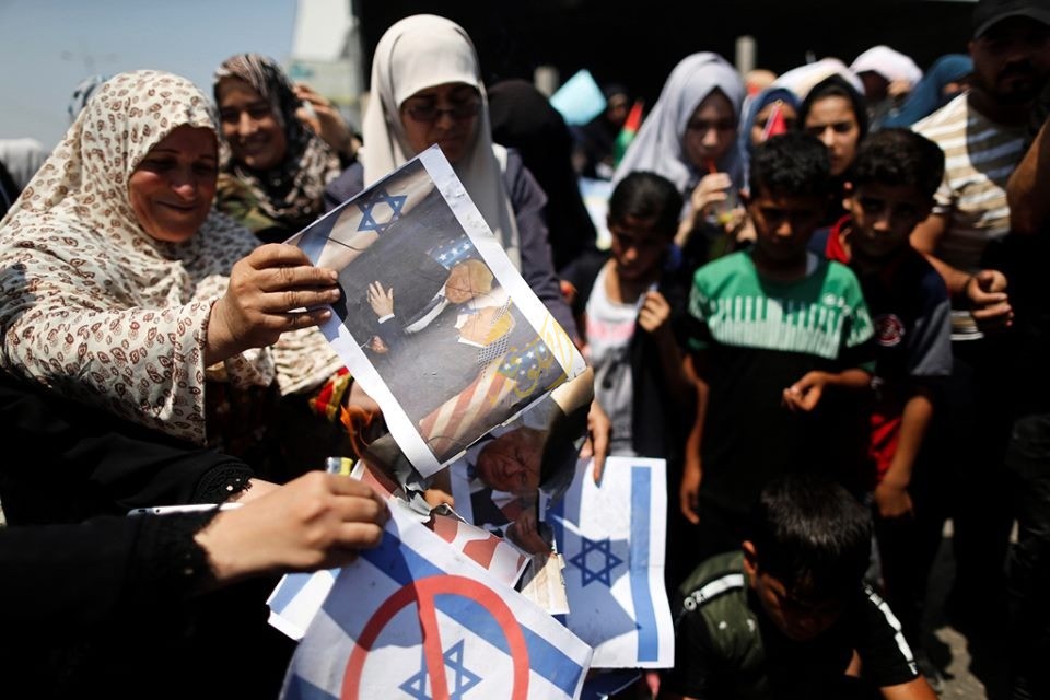 ونظم الفلسطينيون وقفة احتجاج على دوار "نيسان" وسط مدينة بيت لحم المحتلة، رفعوا خلالها لافتات تند بـ"الورشة الأمريكية في البحرين"، وأحرقوا صور بنيامين نتنياهو والرئيس الأمريكي دونالد ترامب، ورفعوا صورا للقدس والأعلام الفلسطينية.