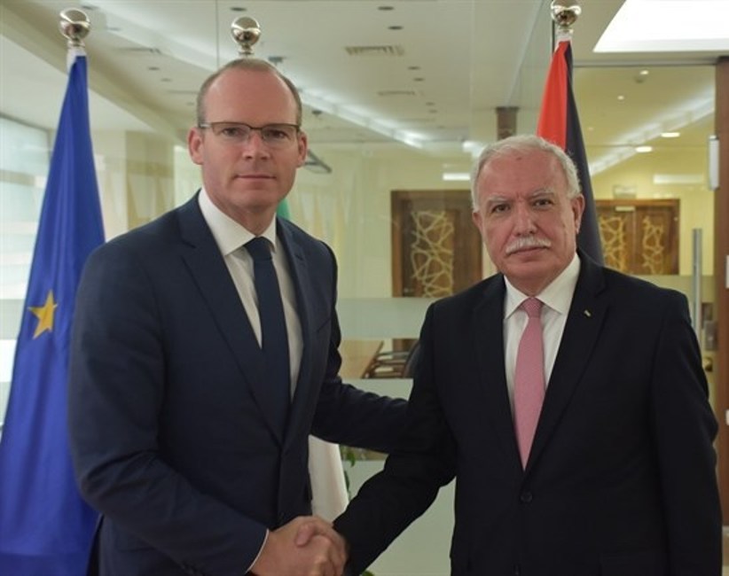 وأكد الوزير الإيرلندي تقدير واحترام إيرلندا للدور الذي يقوم به الرئيس محمود عباس من أجل إيجاد حل سلمي وعبر المفاوضات للصراع الفلسطيني الإسرائيلي والتزامه الدائم لخوض مفاوضات ايجابية وبناءة تفضي لإيجاد حل للقضايا العالقة كافة، موضحاً أن الحكومة الايرلندية تدعم الجهود التي تقوم بها القيادة الفلسطينية في هذا المجال، وهي ترغب في رؤية الجانبين الفلسطيني والإسرائيلي منهمكين في تحديد أولويات البحث، والانطلاق نحو وضع نهاية للصراع طويل الأمد بين الطرفين وفقاً لقواعد القانون الدولي وقرارات الأمم المتحدة ذات الصلة بهذا الصراع.