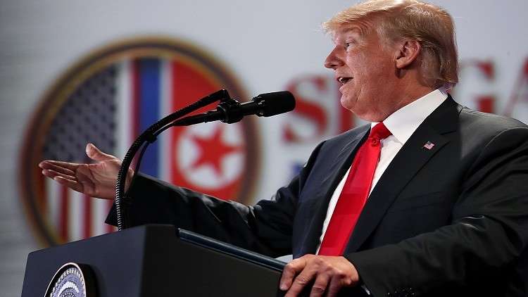 تصريحات ترامب جاءت خلال مؤتمر صحفي في ختام قمته مع زعيم كوريا الشمالية كيم جونغ أون اليوم في سنغافورة.