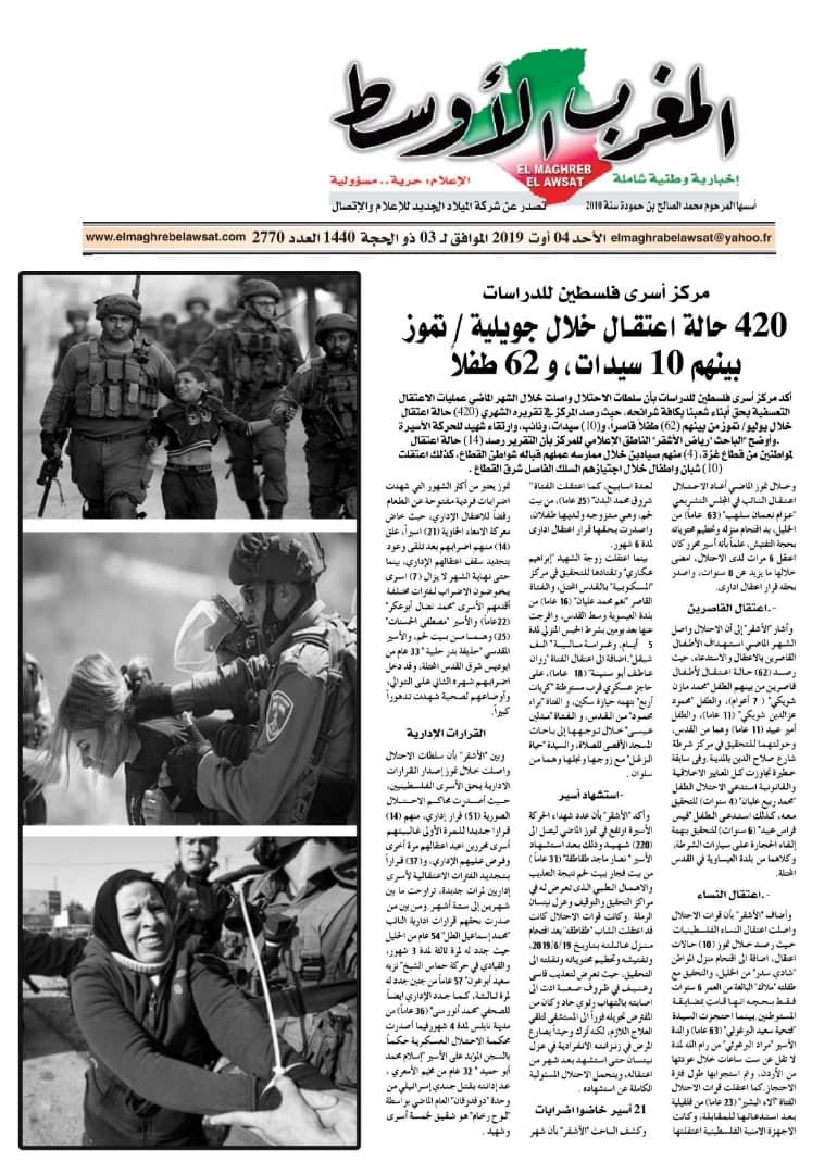 الجزائر: سلطت الصحف الجزائرية الصادرة، اليوم الإثنين، الضوء على معاناة الأسرى الفلسطينيين في سجون الاحتلال، وتناولت الصحف، في مختلف عناوينها، التحديات التي تواجه المعتقلين، وخصوصًا الأطفال والنساء والأسرى المرضى.