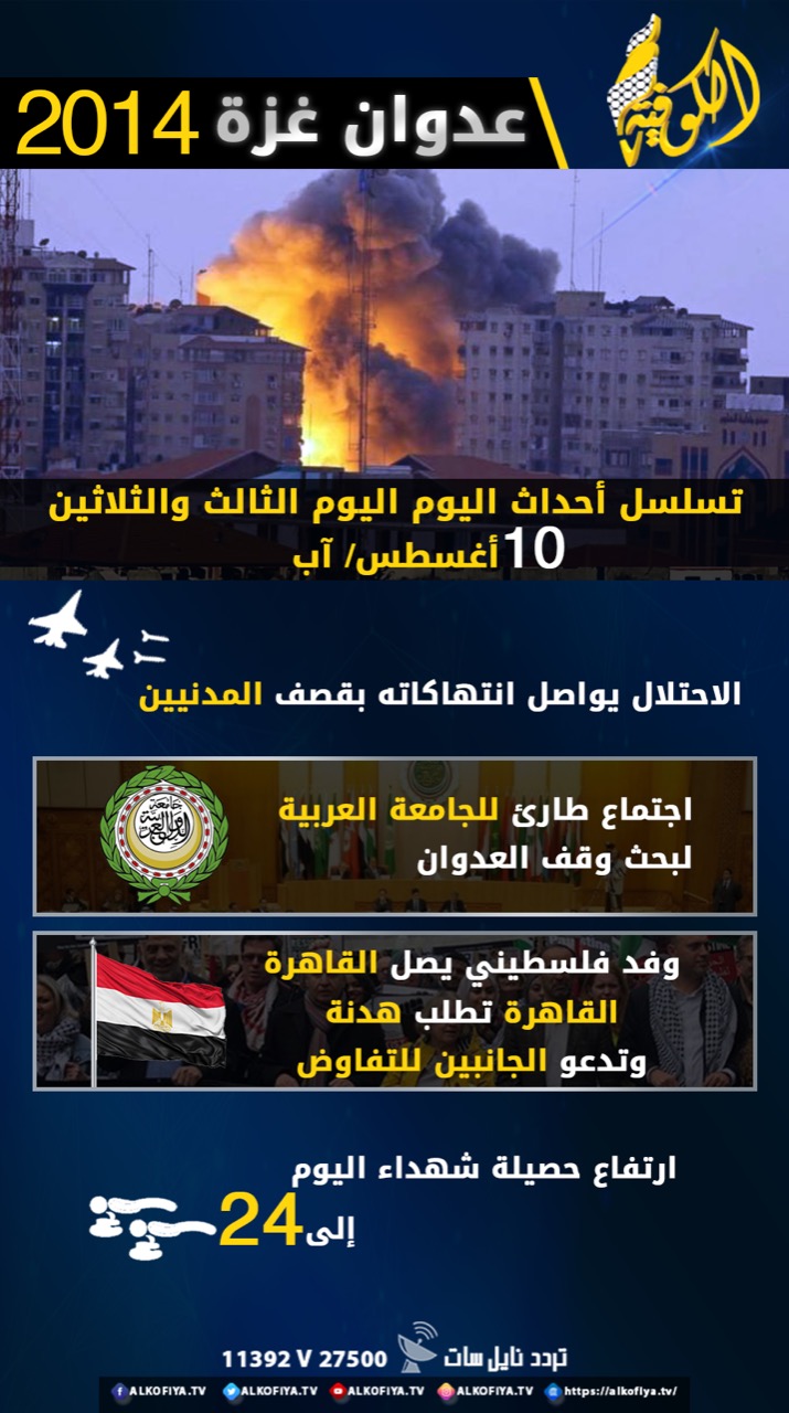 عدوان غزة 2014.. تسلسل أحداث اليوم الثالث والثلاثين