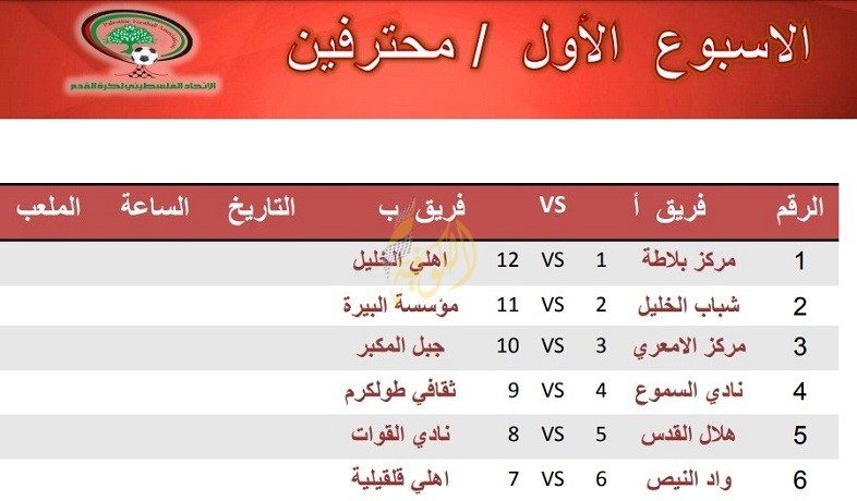 القدس المحتلة: أعلن الاتحاد الفلسطيني لكرة القدم، اليوم الخميس، أن دوري المحترفين لهذا العام سينطلق بتاريخ 26 سبتمبر/ أيلول الجاري.