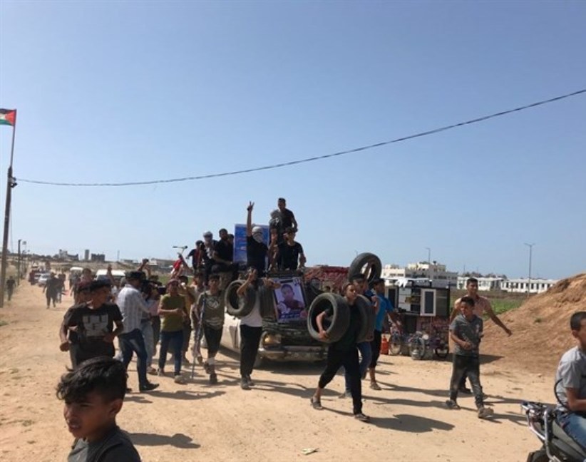وبدأ  المتظاهرون بإشعال الإطارات المطاطية على طول الحدود الشرقية لبلدة جباليا وخان يونس حيث قابلتهم قوات الاحتلال الإسرائيلي بإطلاق الرصاص الحي وإطلاق كثيف لقنابل الغاز.