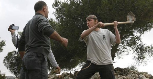 نابلس: مستوطنون يستولون على ثمار الزيتون ومعدات المزارعين في قرية بورين