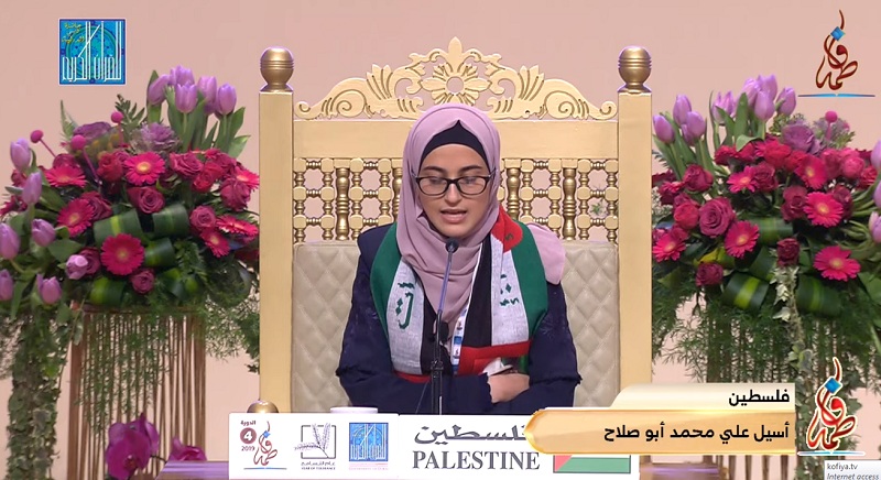 دبي: حصدت الفتاة الفلسطينية أسيل علي محمد أبوصلاح، المركز الثاني في مسابقة الشيخة فاطمة بنت مبارك في إمارة دبي في الامارات العربية المتحدة والتي انطلقت يوم السبت الماضي بمشاركة أكثر من 68 دولة من مختلف دول العالم.